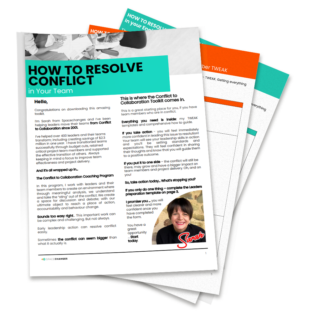 Hi, my name is Sarah Ventress and I run Spacechanges People Development – a Coaching and Consultancy Business specialising in moving individuals and teams from Conflict to Collaboration.